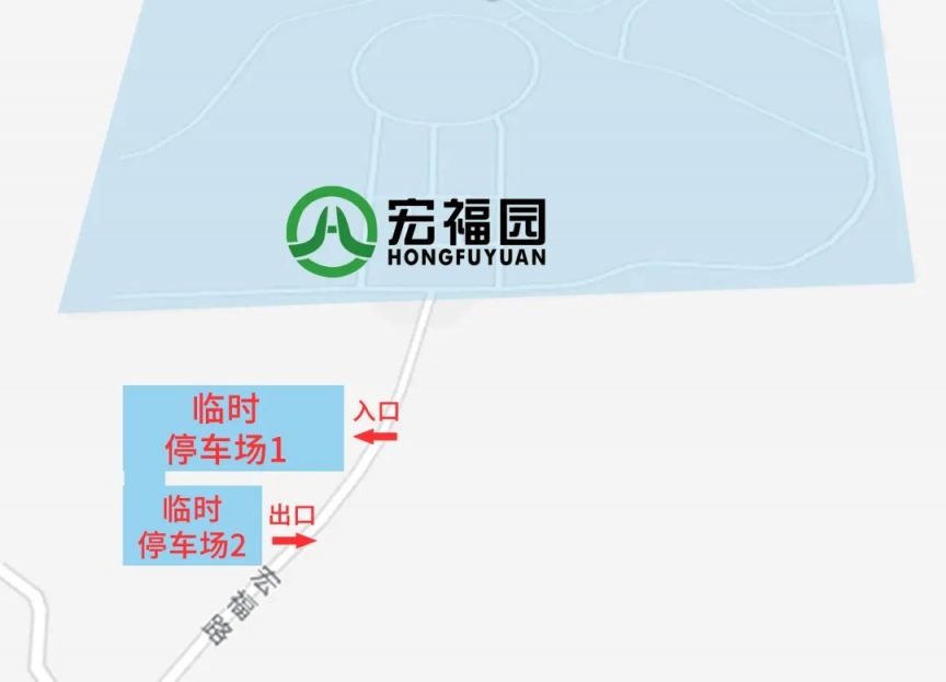 在清明期间,宏福园大门路口前段将设立两个免费临时停车场,请在工作人员的引导下,将车辆有序停放。