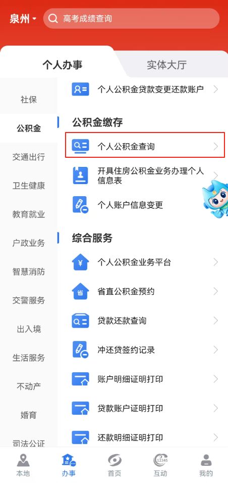 (三)登录“闽政通APP办事公积金缴存个人公积金查询”进行查询。
