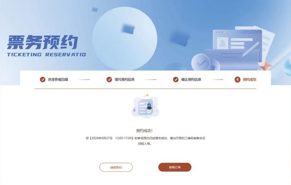 5.预约成功,凭预约二维码或身份证入馆参观。