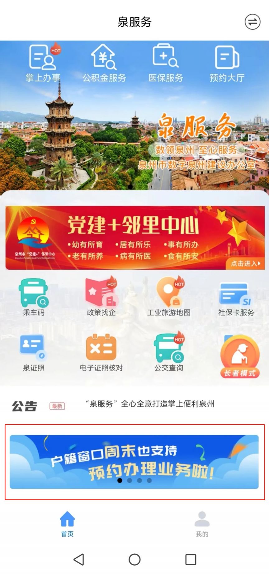 登录泉服务APP,点击首页的轮播图,进入预约系统。