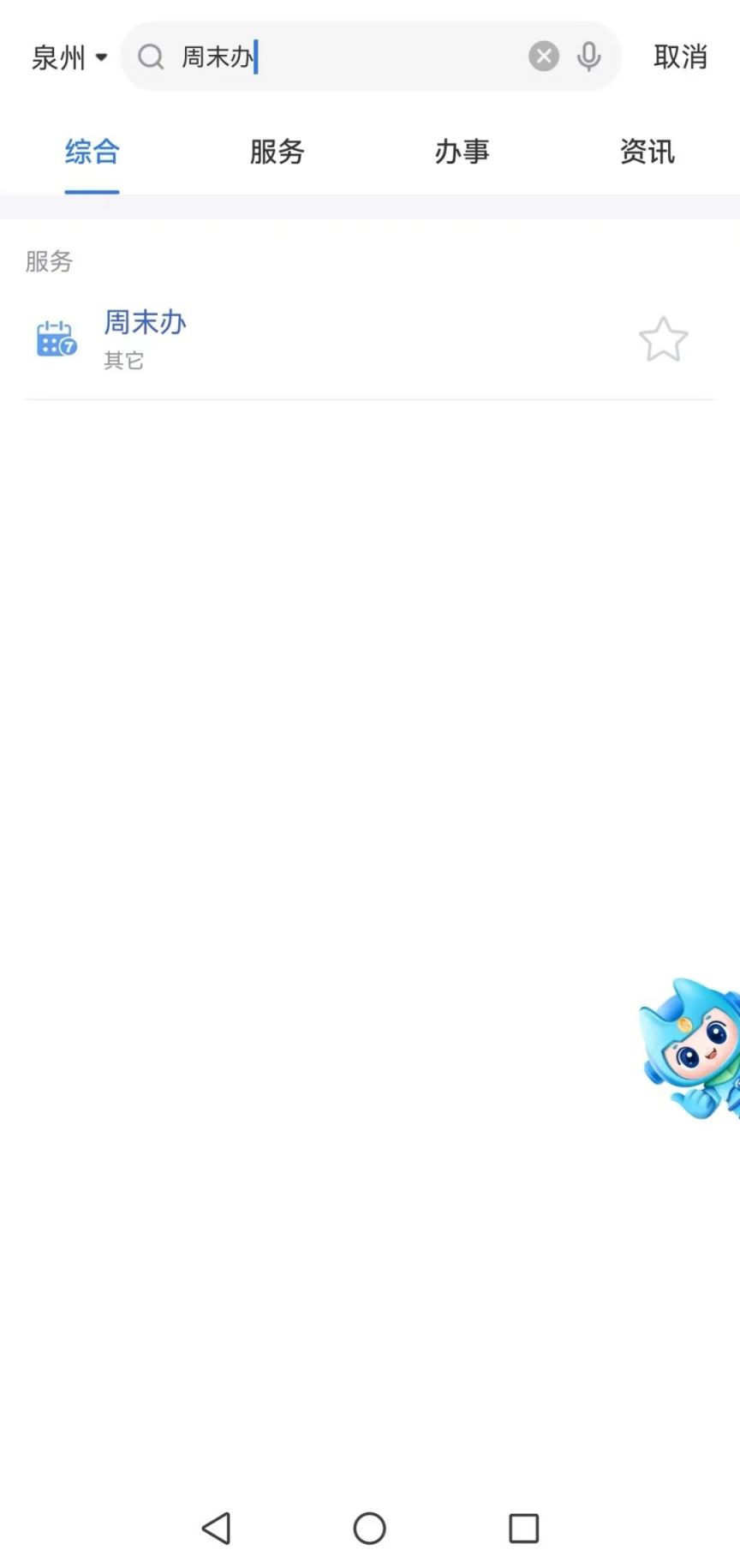打开闽政通APP,搜索“周末办”,进入预约系统。