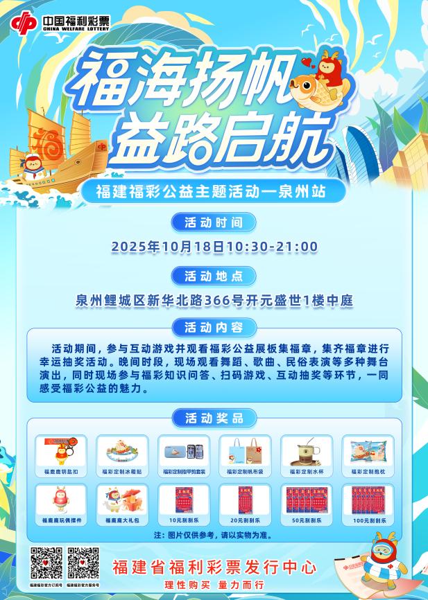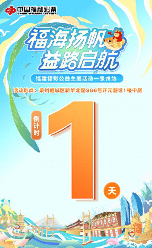 明天(18日),福建福彩"福海扬帆 益路启航"公益主题活动第四站,将在泉州市鲤城区新华北路366号开元盛世1楼中庭举行!从 10 点半到 21 点,全天精彩不打烊。